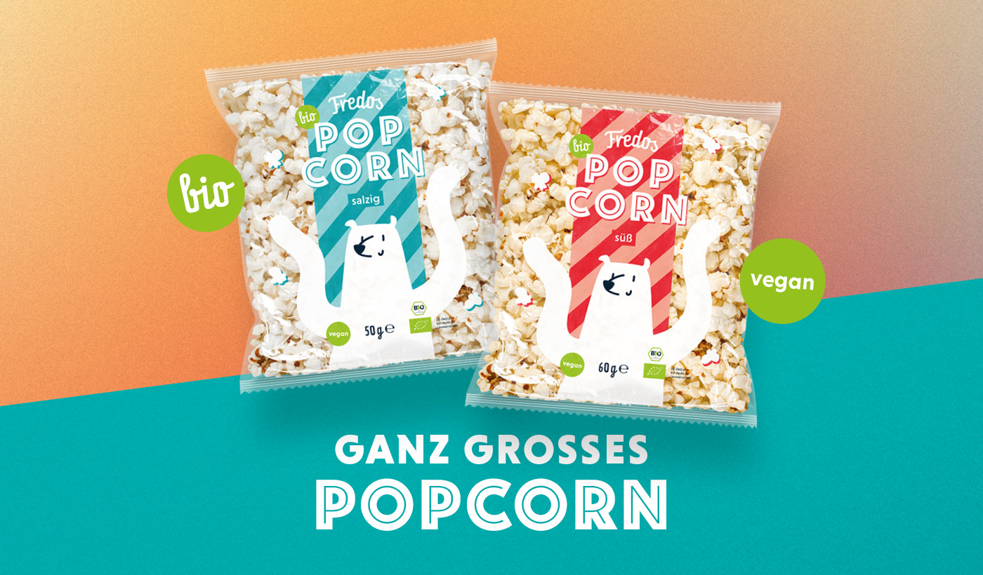 Doch das ist noch nicht alles! Zum Fredos Sortiment gehört auch süßes und salziges Popcorn. Ob ihr die süße Variante mit einem Hauch von Karamell dank Bio-Rohrzucker oder die herzhafte, salzige Version bevorzugt – unser Popcorn ist der perfekte Snack für jede Gelegenheit.